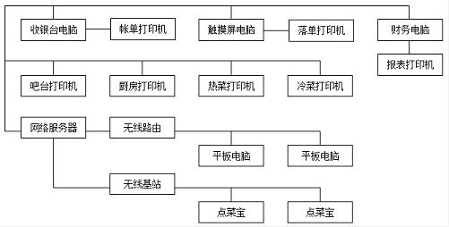 触摸屏电脑和收银台电脑通过网络共享数据库,就可以把触摸屏点的菜品发送到收银台进行收银结帐,并且发送到后厨进行分单打印。