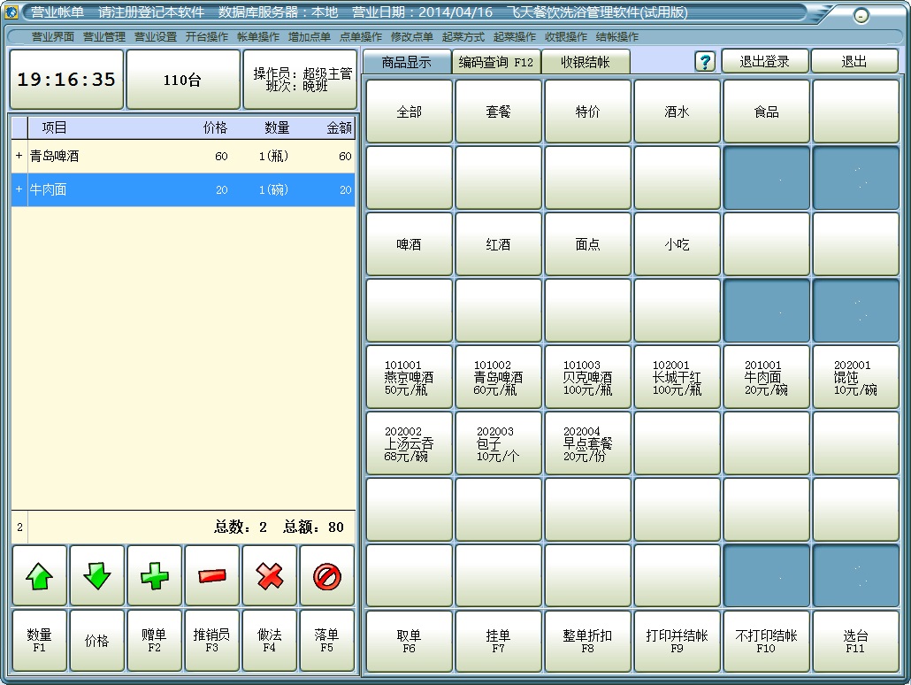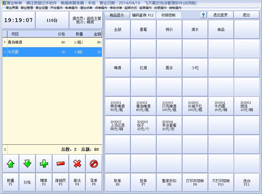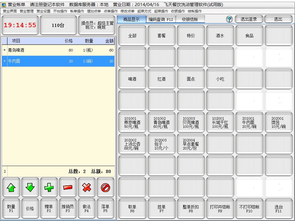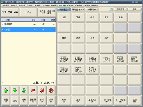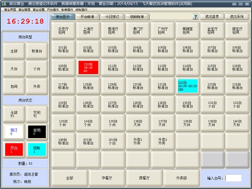 我们用的是无线点菜版本,安装了4台电脑,10个点菜宝,4台IC卡读写器。飞天软件是我们找到的性价比最高的软件,我们使用得很满意。    ——河北邯郸燕赵酒店
