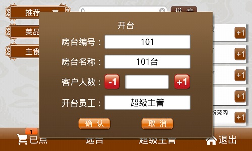 ·如果选中一个空闲房台,将会弹出开台窗口,可输入客户人数,进行开台操作