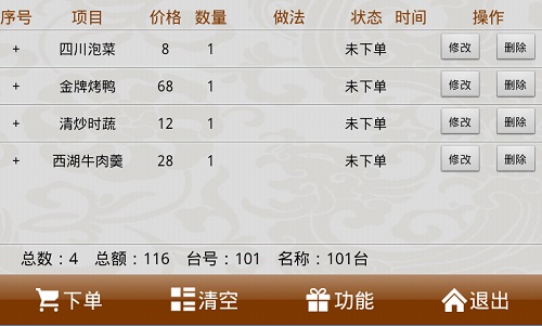 ·可以对未下单的已点菜品进行修改或者删除操作