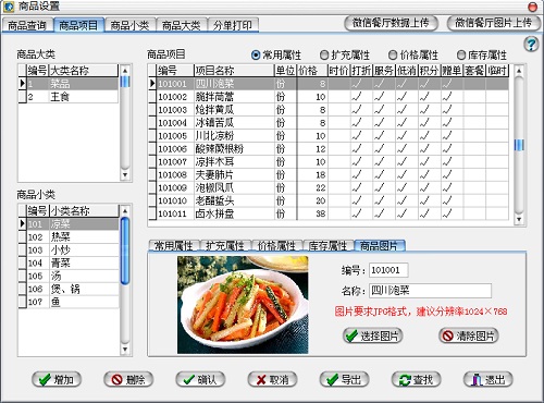 商品资料上传·在软件后台管理的商品设置中,可以输入商品资料和商品图片。