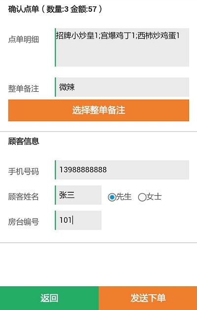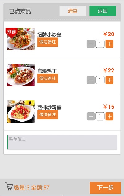 ·已选菜品列表,可为每个菜品分别输入做法备注